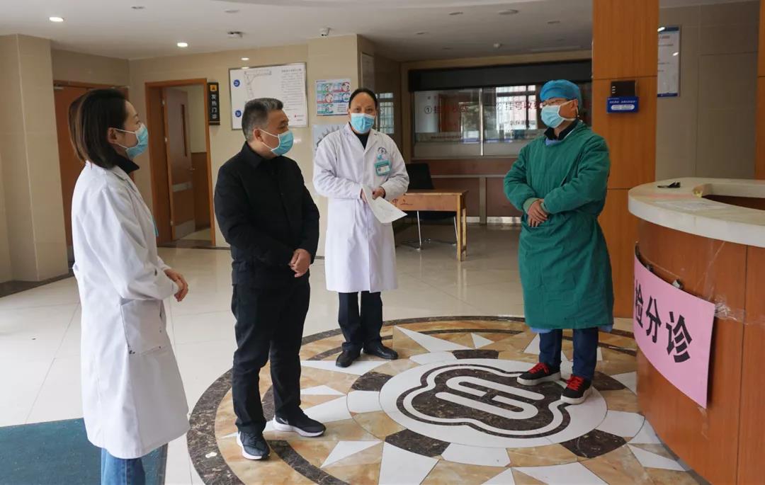 郑局长首先实地查看了我院预检分诊处,与医务人员进行交谈,并详细了解了我院疫情防控措施、发热门诊设置、人员设施安排、医务人员个人防护、医疗物资储备和使用等有关情况,职能部门负责人就我院在疫情防控方面的工作做了详细汇报。