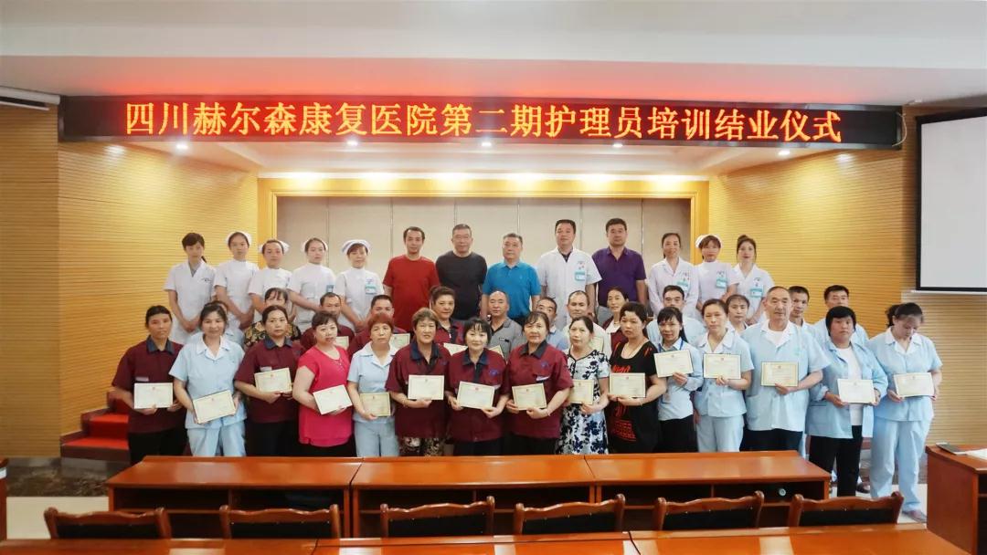 6月18日,四川赫尔森康复医院长期照护保险示训基地第二期护理员培训结业仪式在我院圆满举行,武侯区医疗局局长郑伟、副局长龙扬、四川赫尔森康复医院院长黄云峰等领导莅临本次仪式,共同祝贺与见证本期27名学员顺利结业,成为一名合格的护理员。