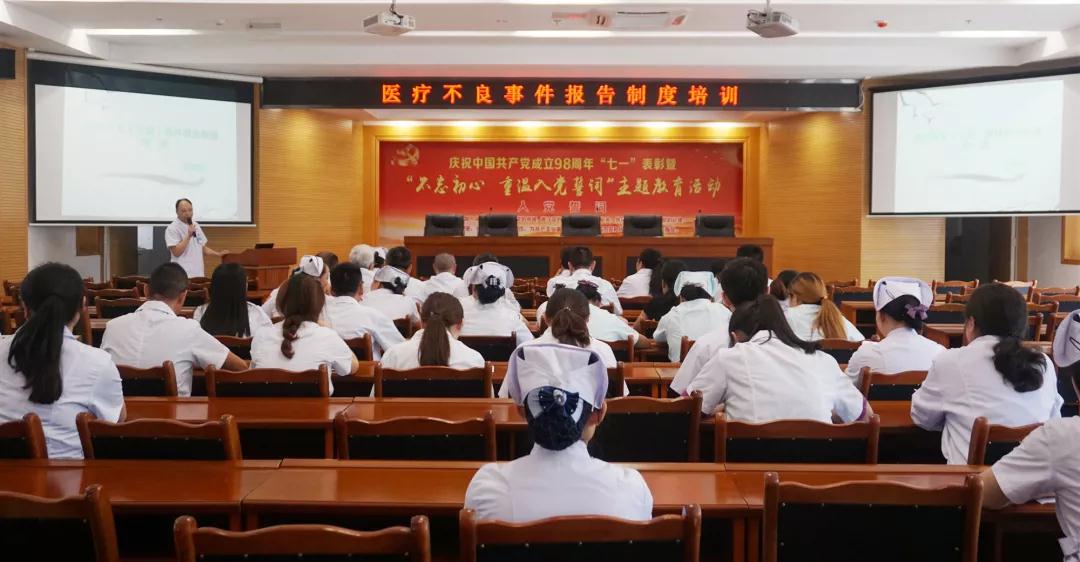 会议名调,建立医疗安全(不良)事件报告制度有利于降低医疗差错发生率,通过了解“错误”,提高对“错误”的识别能力和“免疫”能力。全院医务人员要认真贯彻落实《医疗安全(不良)事件上报告制度》,积极预防,医疗安全,大限度地控制、减少因不良事件引起的危害。