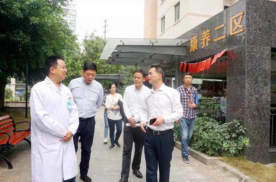 2019年9月30日,成都市武侯区副区长林金辉一行在晋阳街道办副主任彭静等主要领导的陪同下,莅临四川赫尔森康复医院康养中心进行国庆节前安全生产情况的检查及走访。四川赫尔森康复医院院长黄云峰,康养中心主任王龄广及相关人员陪同了此次走访检查。