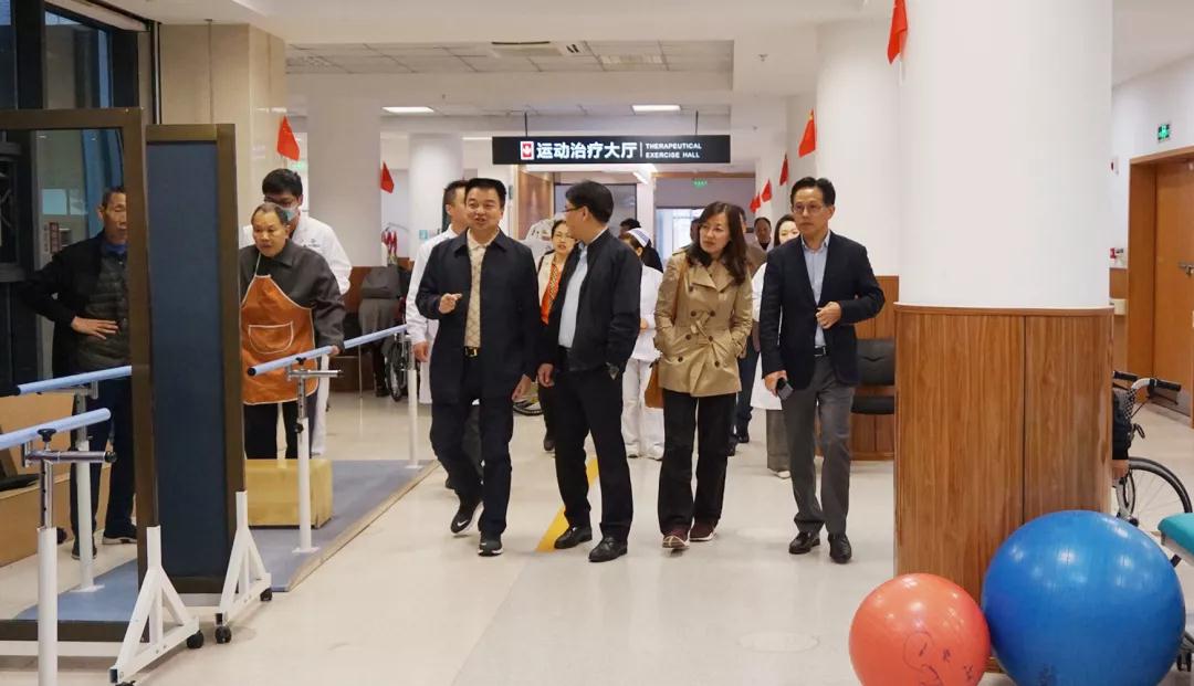 领导一行先后到医院住院楼、康复大厅、康养中心等多处进行实地查看,了解医院整体规划及布局情况,视察患者就医情况和医疗环境。参观完毕后于会议室开展了调研座谈会,郑元赞总裁对医院的办医初衷、整体规划、战略目标等方面做了汇报。随后黄院长对医院发展历程、党支部建设、医联体合作、重点学科、团队建设、康复特色、医养结合、社会影响等方面进行了详细介绍。领导一行深入了解医院开办运营情况和发展建设情况,勉励我院保持良好发展势头,对医疗工作不断探索,推动现代康复体系不断优化。