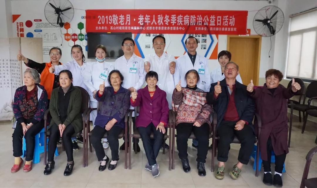 全国老龄工作委员会于2019年10月8日在京举行了全国“敬老月”主题宣传活动,确立今年10月为“敬老月”,活动主题为“孝老爱亲·向上向善”。为积极响应国家政策号召,成都温江区高山村暖阳居日间照料中心、长石社区长乐善邻日间照料中心联合四川赫尔森康复医院,共同开展了“2019敬老月·老年人秋冬季疾病防治公益日活动”。