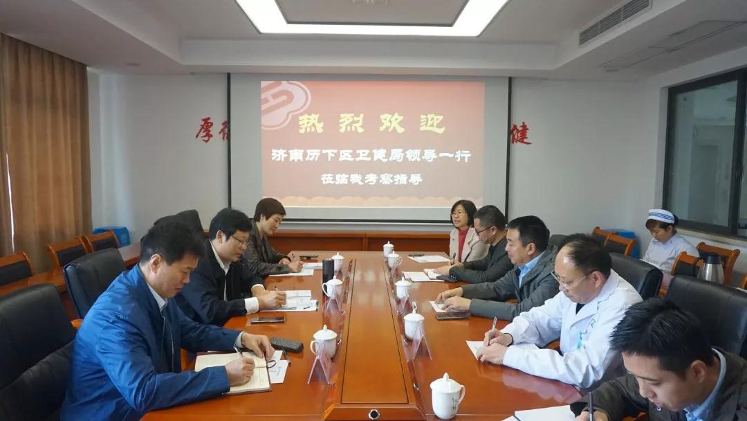11月1日,济南市历下区卫健局陈仕学局长、张文副局长、吴爱军科长及武侯区卫健局相关领导一行,莅临我院考察调研,黄云峰院长及主要职能部门负责人热情接待并全程陪同讲解。