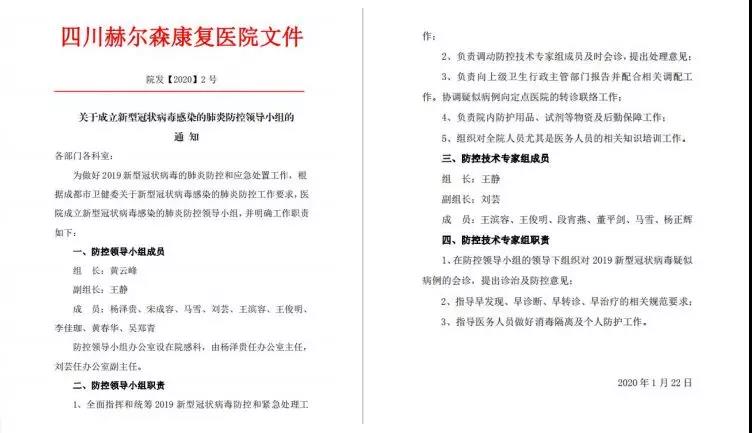 医院积极响应成都市卫健委、武侯区卫健局和四川省医院协会社会办医分会关于医、技、护自愿者的招募,四川赫尔森康复医院医生 4 人、护士 2 人主动请战。