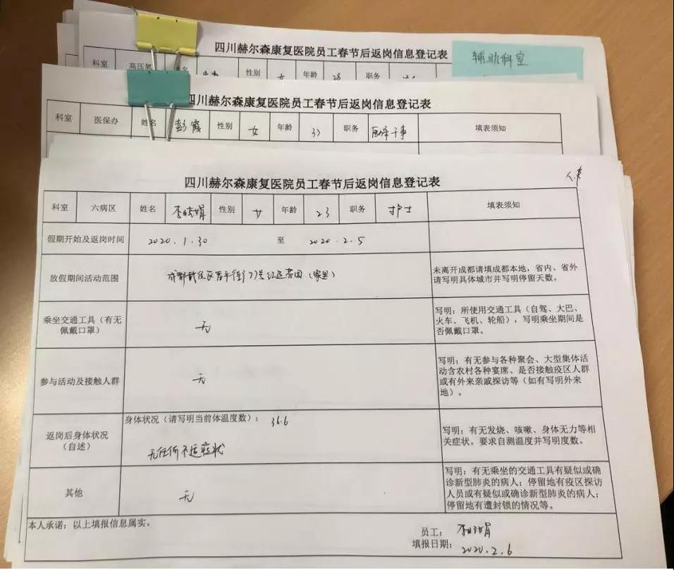由人力资源部严格管理员工的出入,对节后返岗的每位员工进行包括节假日期间的活动范围、 接触人群、自身状况等方面的询问调查和记录,并对信息的真实性承诺,有亲密接触史的员工,指导其进行居家医学观察。