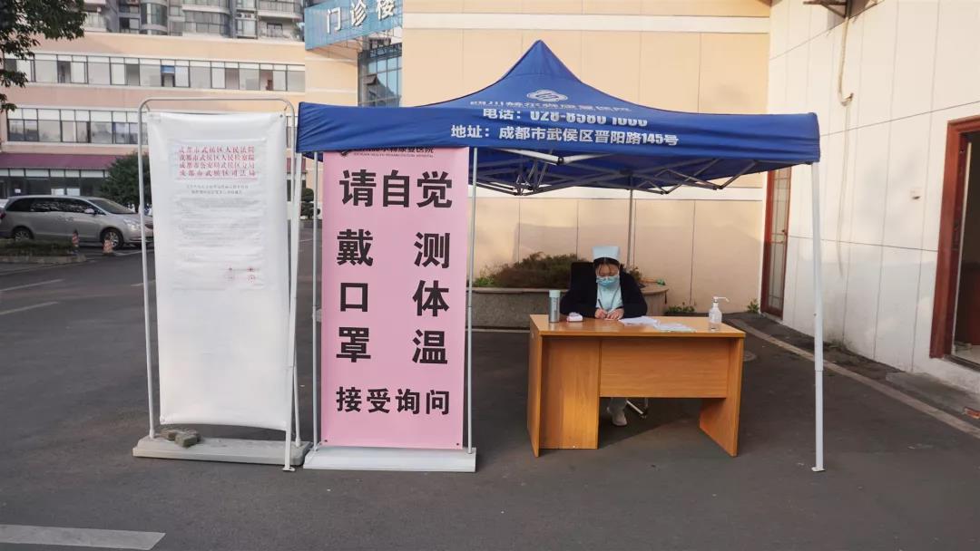 为了更好的发挥武侯区发热门诊医疗机构的作用,保护病人和医护人员的安全,结合成都市武侯区卫健局的要求,完成了发热门诊的整体布置改造,抽派医护人员 24 小时值班,并落实了全院各区域的定时消毒。